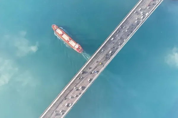 Foto dari udara yang diabadikan menggunakan drone pada 11 Desember 2025 ini menunjukkan Jembatan Fatih Sultan Mehmet yang membentang di atas Selat Bosphorus di Istanbul, Turkiye. (Xinhua/Liu Lei)